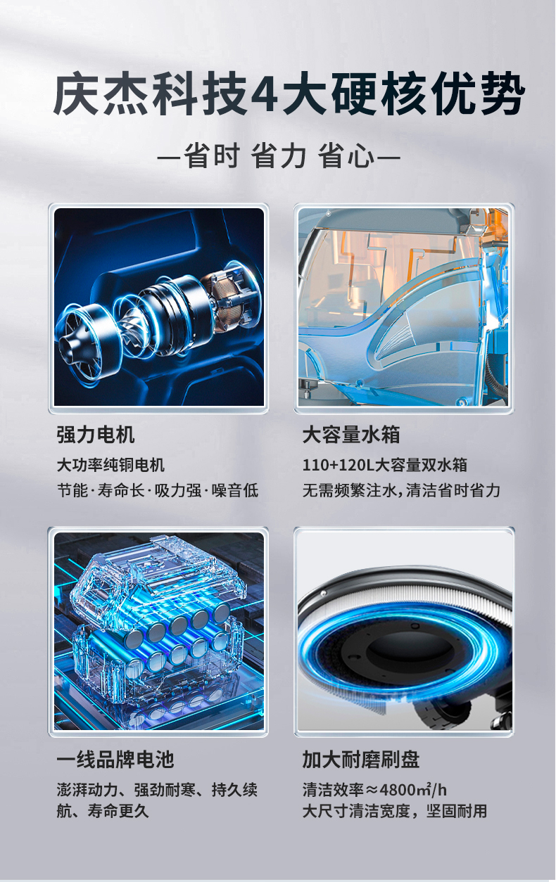 产品分类: 洗地机/车 适用场所: 适用面积: 庆杰QJ-X85驾驶式洗地车系列,是适合大面积地面清洗的理想工具。机器采用人体工学设计,操控简单,高效,安全性高。适用于生产车间、机场车站,学校、超市,医院,物流中心等区域的深度清洁工作。
